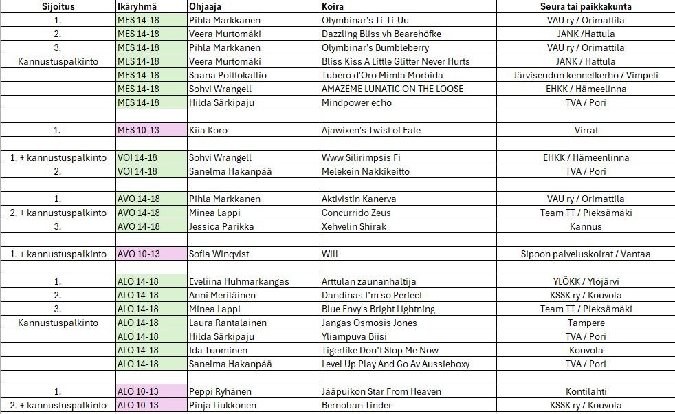 Palveluskoiraliitto toivottaa paljon onnea kaikille.