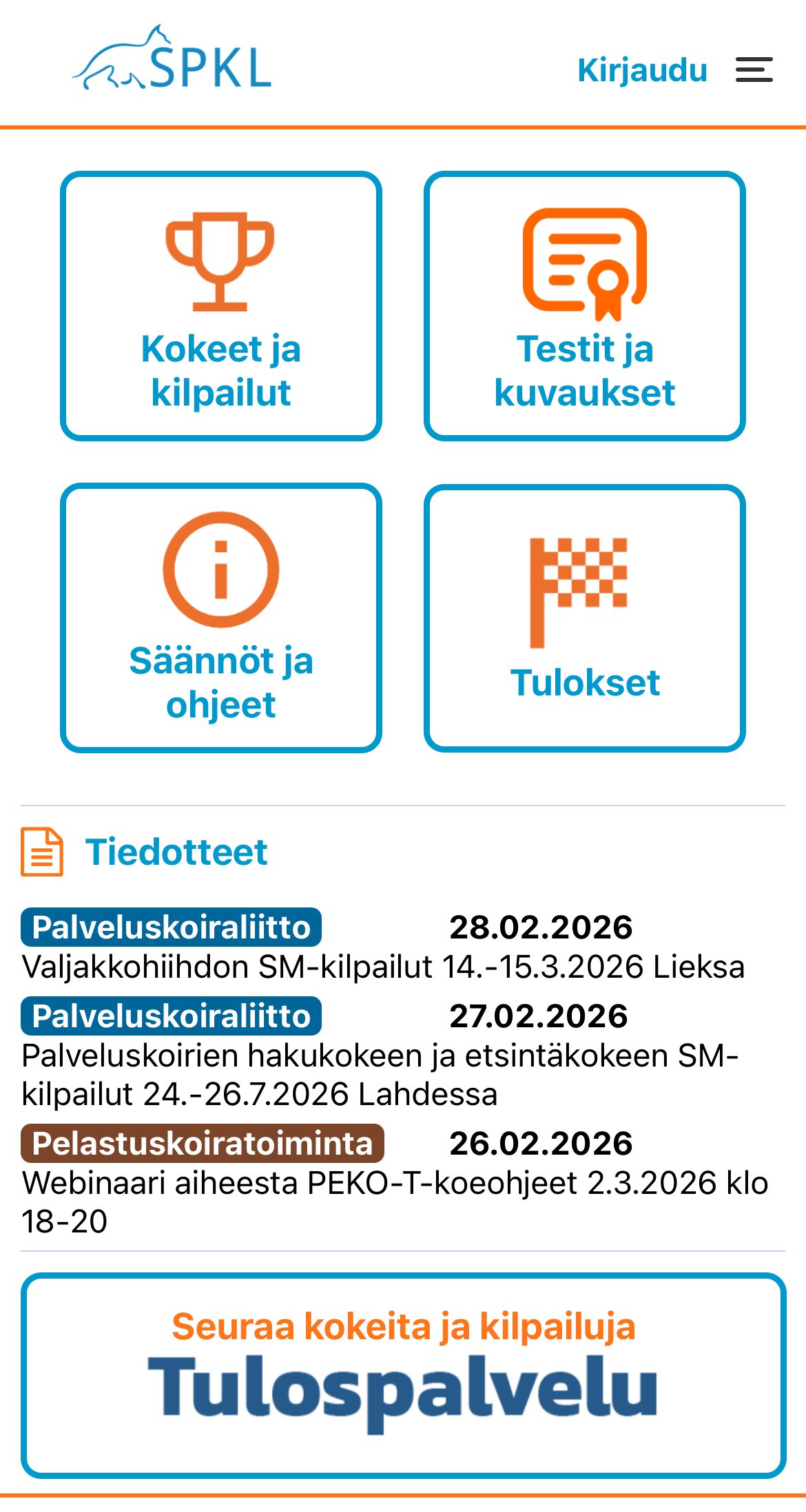 • Seurata kokeita ja kilpailuja tulospalvelussa